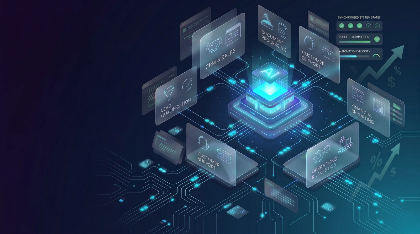 From AI strategy and architecture through to development, deployment, and ongoing support — we deliver end-to-end automation solutions that produce measurable commercial results.